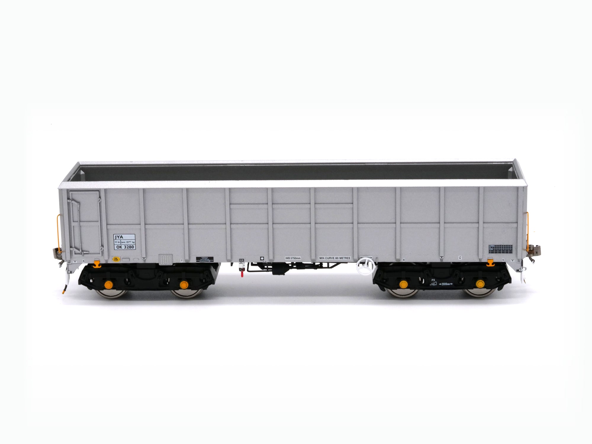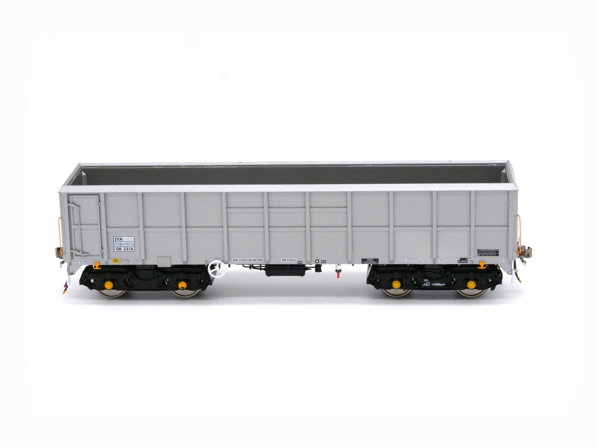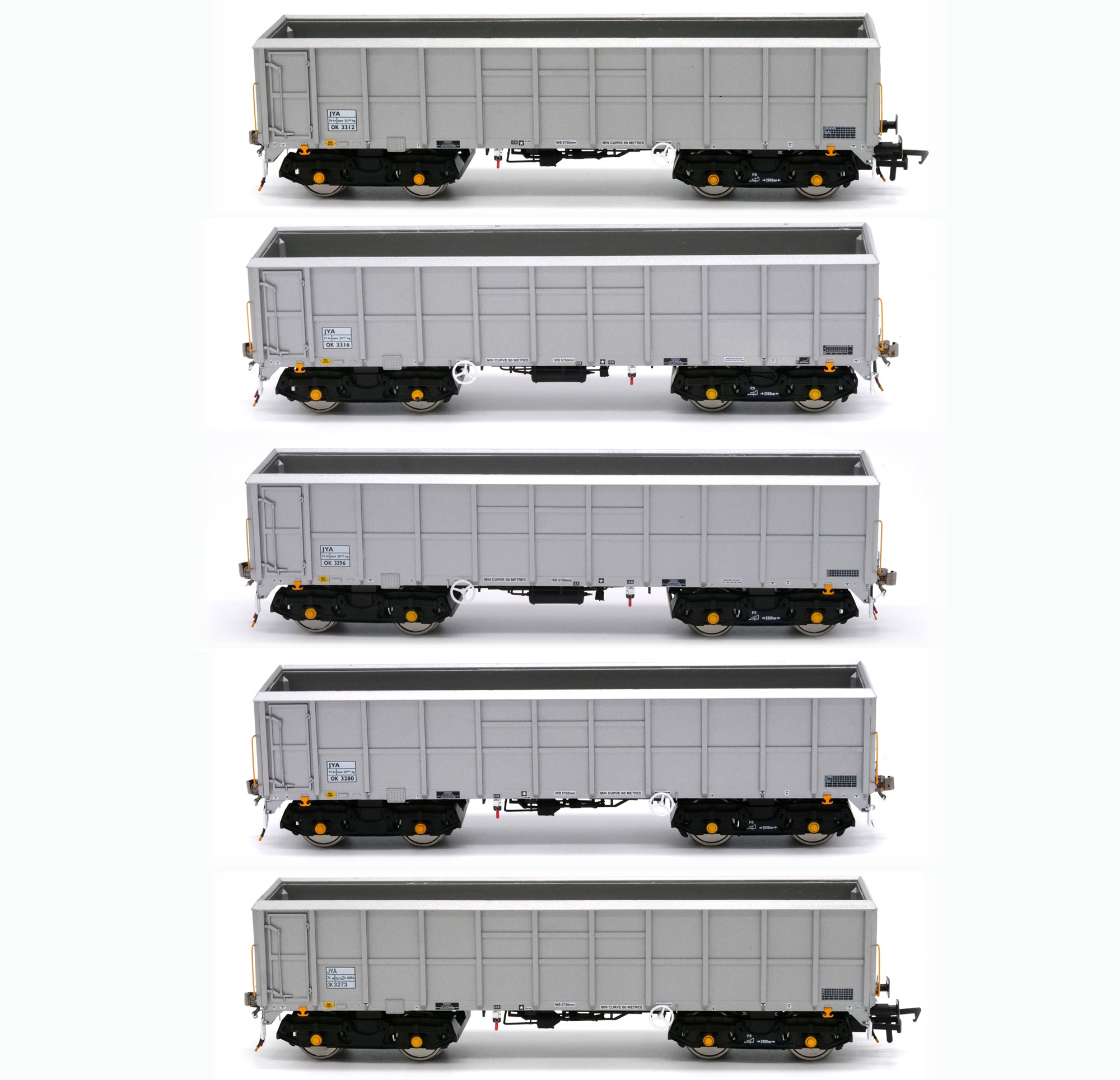 Both inner and outer wagons have been modelled, and we are producing models in the original Foster Yeoman livery (1980s to late 1990s), revised "Big Y" livery (1997 to mid 2010s) and the later unbranded variety (2000s onwards).